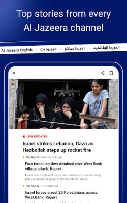 "Al Jazeera | الجزيرة News" অ্যাপের মাধ্যমে আপনি আপনার পছন্দের খবরগুলোকে ব্যক্তিগতকৃত উপায়ে সাজিয়ে নিতে পারবেন। ব্রেকিং নিউজের তাৎক্ষণিক সতর্কতা এবং পুশ নোটিফিকেশন নিশ্চিত করে যে বিশ্বের কোনো গুরুত্বপূর্ণ ঘটনা আপনার চোখ এড়াবে না। "Al Jazeera | الجزيرة" এর একাধিক চ্যানেলের মাধ্যমে পৃথিবীর প্রতিটি কোণ থেকে ভিন্ন ভিন্ন দৃষ্টিকোণ থেকে গল্পগুলি আবিষ্কার করুন। প্রিয় ব্যক্তিত্বদের কণ্ঠ থেকে পডকাস্ট শুনে আপনার জ্ঞানকে সমৃদ্ধ করুন এবং প্রতিটি খবরকে আরও গভীরভাবে উপলব্ধি করুন।
