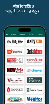 এর ব্যবহারকারী-বান্ধব নকশা আপনাকে মুগ্ধ করবে। একটি সহজ এবং পরিচ্ছন্ন ইন্টারফেসের মাধ্যমে আপনি সহজেই আপনার পছন্দের সংবাদপত্র খুঁজে নিতে পারবেন, কোনো জটিলতা ছাড়াই। বাংলা ও ইংরেজি পত্রিকাগুলোকে এখানে সুন্দরভাবে আলাদা ভাগে সাজানো হয়েছে, যেন এক নজরেই আপনি আপনার কাঙ্ক্ষিত বিষয়টি বেছে নিতে পারেন। একইভাবে, আন্তর্জাতিক সংবাদ মাধ্যমগুলিও পৃথকভাবে বিন্যস্ত করা হয়েছে, যা আপনার পাঠ অভিজ্ঞতাকে আরও সুসংগঠিত করে তোলে।