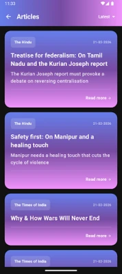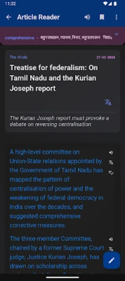 প্রতিদিন দেশ-বিদেশের স্বনামধন্য সংবাদমাধ্যম থেকে আসা গুরুত্বপূর্ণ মতামত ও সম্পাদকীয় প্রবন্ধ পড়ুন এবং প্রতিটি শব্দ গভীরভাবে বোঝার সুযোগ পান। প্রবন্ধ পড়ার সময় কোনো কঠিন শব্দের সম্মুখীন হলে, সেটির উপর দীর্ঘক্ষণ চাপ দিয়ে তাৎক্ষণিকভাবে বাংলা বা হিন্দিতে অর্থ, সমার্থক শব্দ, পদ পরিচয় এবং বাস্তব বাক্য প্রয়োগের উদাহরণ দেখে নিন। এই ইন্টারেক্টিভ ফিচার ব্যবহার করে আপনি নিজের দৈনিক শব্দভাণ্ডার তালিকা তৈরি করতে পারবেন এবং সেগুলোকে আপনার প্রয়োজন অনুযায়ী সংরক্ষণ করতে পারবেন।