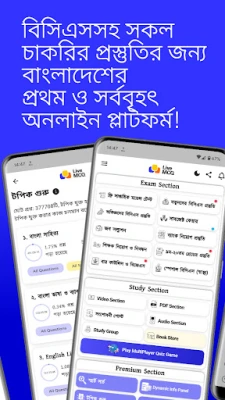 Live MCQ™-এর পরীক্ষা সেকশন আপনাকে দৈনিক লাইভ এমসিকিউ পরীক্ষায় অংশগ্রহণের সুযোগ দেয়, যেখানে আপনি প্রতিটি প্রশ্নের বিস্তারিত ব্যাখ্যাসহ তাৎক্ষণিক ফলাফল পাবেন। আপনার প্রস্তুতিকে আরও মজবুত করতে স্টাডি সেকশন সমৃদ্ধ করা হয়েছে লাইভ ও রেকর্ডেড ভিডিও ক্লাস, পিডিএফ ও অডিও স্টাডি ম্যাটেরিয়াল দিয়ে। সহপাঠীদের সাথে স্টাডি গ্রুপে অনুশীলন করুন এবং মাল্টি-প্লেয়ার কুইজ গেমে অংশ নিয়ে নিজের জ্ঞানকে শাণিত করুন। CrackTech Limited নিশ্চিত করে আপনার প্রতিটি অধ্যায়ন যেন ফলপ্রসূ হয়।