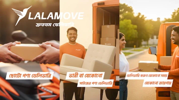 আপনার কি দ্রুত এবং নির্ভরযোগ্য পরিবহন সেবার প্রয়োজন? ছোট পার্সেল থেকে শুরু করে বিশাল আকারের পণ্য, আপনার যেকোনো লজিস্টিক চাহিদা পূরণে লালামুভ একটি শক্তিশালী প্ল্যাটফর্ম। ২০১৩ সাল থেকে হংকং-এ যাত্রা শুরু করে, এশিয়া, ল্যাটিন আমেরিকা এবং ইএমইএ জুড়ে ১৪টি বাজারে আমরা ব্যক্তি ও ব্যবসা প্রতিষ্ঠানের জন্য ঝামেলামুক্ত এবং কার্যকর পরিবহন সমাধান নিয়ে এসেছি। লালামুভ-এর সুবিশাল ড্রাইভার নেটওয়ার্কের মাধ্যমে, যখন যা প্রয়োজন, সে রকম দ্রুত, সহজ এবং সাশ্রয়ী ডেলিভারি সেবা এখন আপনার হাতের মুঠোয়।