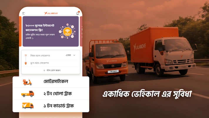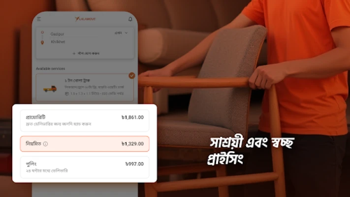 জরুরি ডেলিভারি হোক বা সময়-নির্ধারিত বাণিজ্যিক চালান, লালামুভ ২৪/৭ অন-ডিমান্ড, একই দিনে, পরের দিনে বা নির্দিষ্ট সময়ে ডেলিভারির সুবিধা নিশ্চিত করে। এমনকি একাধিক গন্তব্যে পণ্য পরিবহন বা লোড-আনলোডের জন্য সহকারীর প্রয়োজন হলেও আমরা প্রস্তুত। মোটরসাইকেল, সেডান, এবং আসবাবপত্র বা ভারী মালামালের জন্য পিকআপ ট্রাক সহ, আপনার প্রয়োজন অনুসারে সঠিক বাহন বেছে নেওয়ার সুযোগ রয়েছে। আমাদের দক্ষ ও প্রশিক্ষিত চালকরা নিশ্চিত করে যে আপনার পণ্য সবসময় নিরাপদে গন্তব্যে পৌঁছাবে, আর সম্পূর্ণ স্বচ্ছ মূল্যের কারণে কোনো লুকানো খরচ নিয়ে চিন্তা করতে হবে না—বুকিংয়ের আগে আপনি আপনার ডেলিভারির খরচ জানতে পারবেন এবং নগদ বা অ্যাপের মাধ্যমে পেমেন্ট করতে পারবেন।