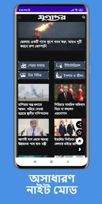 **Newspapers bd: All Bangla News** একটি অসাধারণ পঠন অভিজ্ঞতার জন্য তৈরি করা হয়েছে। এর উন্নত UI ডিজাইন আপনাকে মুগ্ধ করবে। রাতে আরামদায়ক পড়ার জন্য থাকছে নাইট মোড, আর আপনার পছন্দ অনুযায়ী টেক্সট সাইজ ছোট-বড় করার সুবিধা। ডেটা সাশ্রয়ের জন্য ছবি লোড/আনলোড করার বিকল্প, ফুল-স্ক্রিন এবং ল্যান্ডস্কেপ মোডের মতো বৈশিষ্ট্যগুলি আপনার পাঠকে আরও আনন্দদায়ক করে তুলবে। এছাড়াও, বাংলা ও ইংরেজির মধ্যে অনুবাদ, আইকন কাস্টমাইজেশন এবং নিজের পছন্দের স্টাটিং পেজ সেট করার স্বাধীনতা আপনার নিউজ ফিডকে ব্যক্তিগতকৃত করবে।