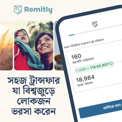 আপনার প্রিয়জনদের কাছে অর্থ প্রেরণের প্রক্রিয়াকে সহজ ও নির্ভরযোগ্য করে তুলতে Remitly নিয়ে এসেছে এক আধুনিক সমাধান। বিশ্বের ১০০টিরও বেশি মুদ্রায় আকর্ষণীয় বিনিময় হার এবং কম লেনদেন খরচে, Remitly নিশ্চিত করে যে আপনার পাঠানো টাকার সিংহভাগই প্রাপকের কাছে পৌঁছায়, কোনো অতিরিক্ত ফি ছাড়াই। আমাদের সুদৃঢ় বহুস্তরীয় নিরাপত্তা ব্যবস্থা আপনার প্রতিটি লেনদেনকে সুরক্ষিত রাখে, যার ফলে আপনি নিশ্চিন্তে অর্থপ্রেরণ করতে পারেন।