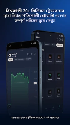 XM অ্যাপ শুধুমাত্র একটি ট্রেডিং প্ল্যাটফর্ম নয়, এটি একটি বুদ্ধিমত্তাসম্পন্ন সহযোগী। এর সমন্বিত উন্নত চার্টিং টুলস এবং স্মার্ট ইন্ডিকেটর আপনাকে গভীর বাজার বিশ্লেষণ এবং কৌশলগত সিদ্ধান্ত গ্রহণে সহায়তা করে। ২৪/৭ XM এআই আপনার সমস্ত ট্রেডিং-সংক্রান্ত প্রশ্নের দ্রুত ও নির্ভুল উত্তর দেয়। সর্বশেষ মার্কেট সংবাদ, বিশ্লেষণ এবং ব্যক্তিগতকৃত ওয়াচলিস্টের মাধ্যমে আপনি সর্বদা বাজারের গতিবিধির সাথে তাল মিলিয়ে চলতে পারবেন। এছাড়া, নোটিফিকেশন সেন্টার ব্যক্তিগত প্রাইস অ্যালার্ট এবং রিয়েল-টাইম বিজ্ঞপ্তি সরাসরি আপনার ডিভাইসে নিয়ে আসে। XM আপনাকে ট্রেডিং প্রতিযোগিতায় অংশগ্রহণ করে দক্ষতা যাচাইয়ের সুযোগ দেয় এবং কপি ট্রেডিংয়ের মাধ্যমে অভিজ্ঞদের কৌশল অনুসরণ করে আপনার পোর্টফোলিওকে সমৃদ্ধ করার পথ খুলে দেয়।