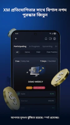 XM ব্যবহারকারীদের জন্য শিক্ষাকেও অগ্রাধিকার দেয়। আপনি আমাদের বিস্তৃত শিক্ষামূলক রিসোর্স থেকে ট্রেডিং শিখতে পারবেন অথবা আপনার বিদ্যমান জ্ঞানকে আরও তীক্ষ্ণ করতে পারবেন, যার মধ্যে রয়েছে দৈনিক লাইভ সেশন এবং বিশেষজ্ঞদের সাথে প্রশ্নোত্তরের সুযোগ। নতুনরা কিংবা অভিজ্ঞরা, সকলেই XM-এর ফ্রি ডেমো অ্যাকাউন্ট ব্যবহার করে ভার্চুয়াল ফান্ডে মার্কেটের বাস্তব পরিস্থিতিতে ঝুঁকিবিহীন অনুশীলন করতে পারেন। এখানে কোনো সময়সীমা নেই, তাই আপনি আপনার নিজস্ব গতিতে কৌশল পরীক্ষা করতে এবং অ্যাপের প্রতিটি ফিচার অন্বেষণ করতে পারবেন। XM অ্যাপ আপনার প্রতিটি ট্রেডিং চাহিদা পূরণ করে একটি সুসংহত এবং নিরবচ্ছিন্ন অভিজ্ঞতা নিশ্চিত করে।